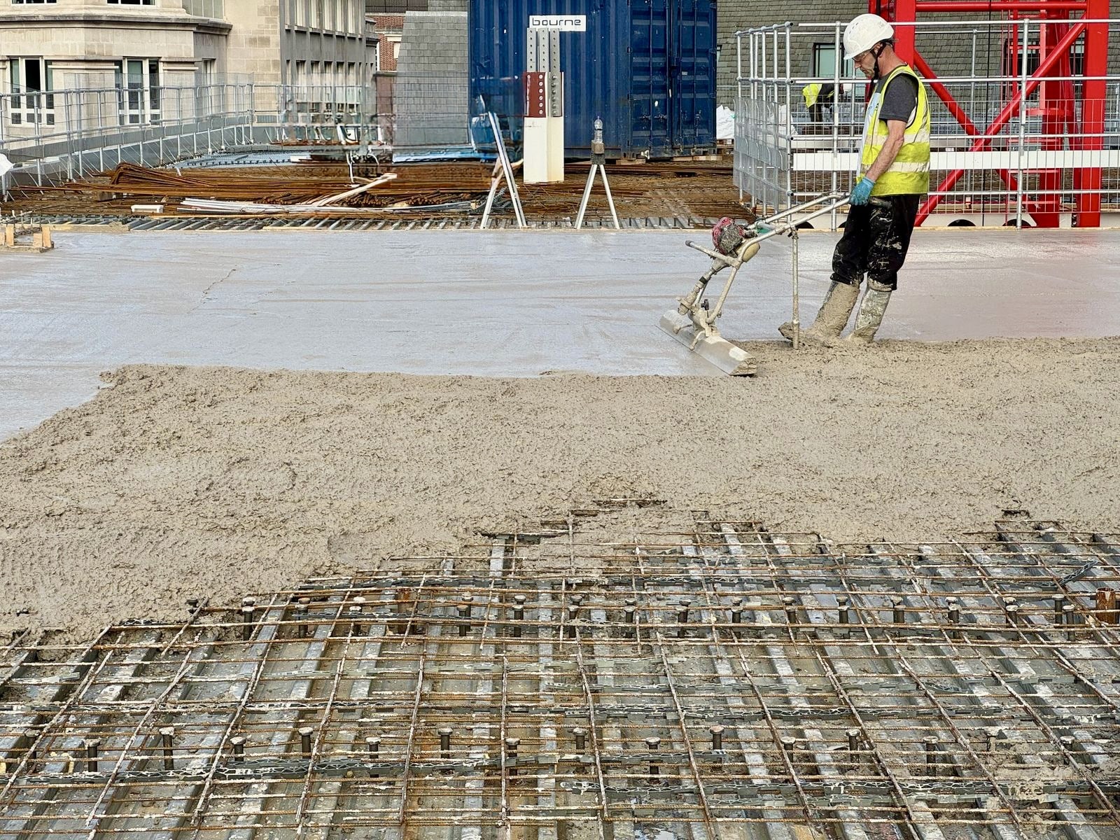 Composite metal decking is a high-strength steel framework designed to support concrete slabs in construction projects. It combines the compressive strength of concrete with the tensile strength of steel, creating a durable and stable structure. The decking consists of profiled sheets, which act as formwork for the concrete during the pouring process and bond with the concrete once it sets.